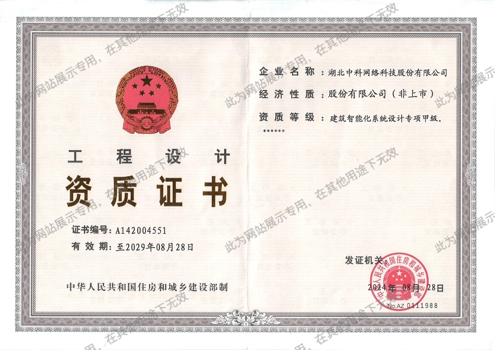 • 國(guó)家建筑智能化系統(tǒng)設(shè)計(jì)專項(xiàng)甲級(jí)資質(zhì)