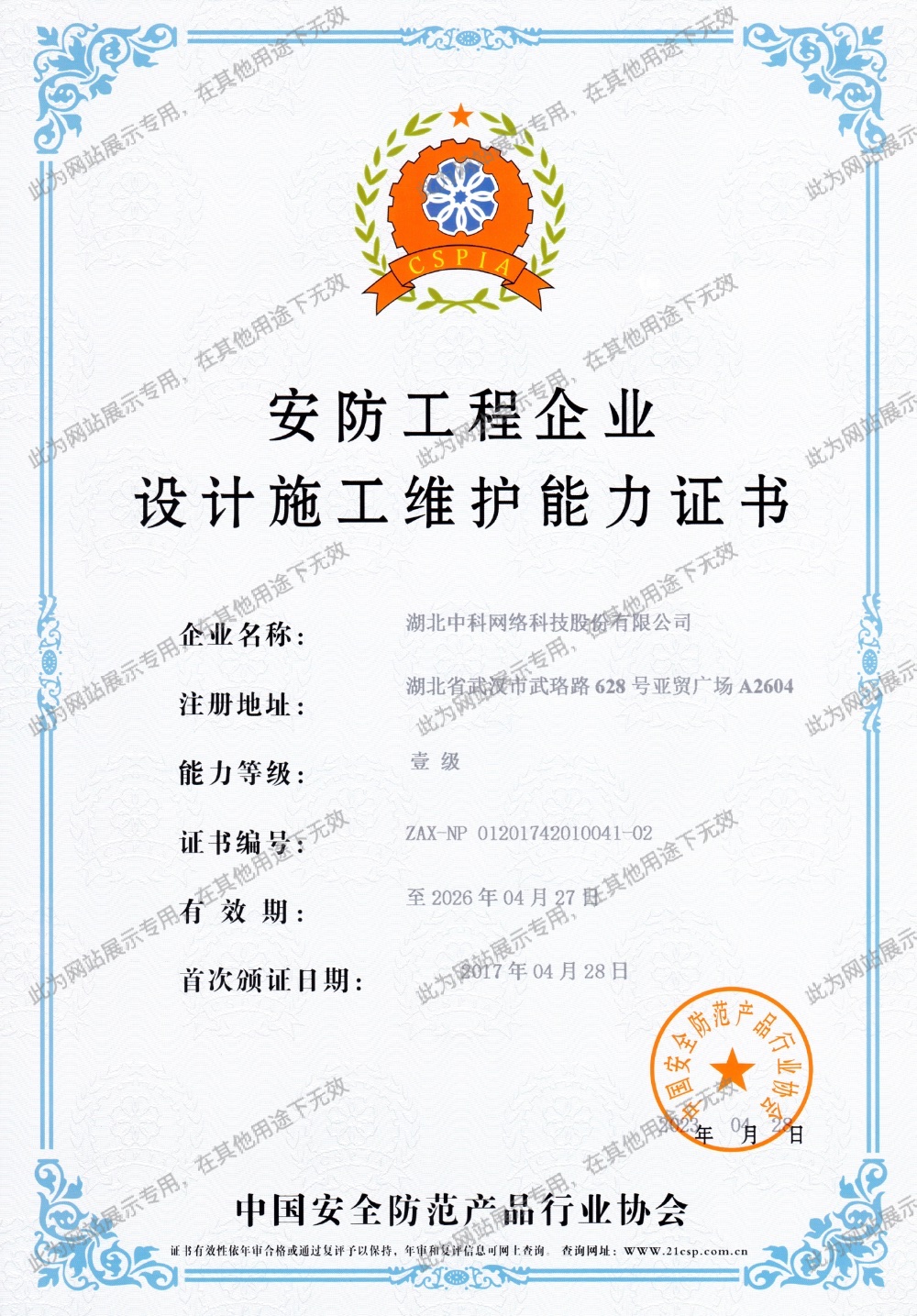 • 國(guó)家安防工程企業(yè)壹級(jí)資質(zhì)